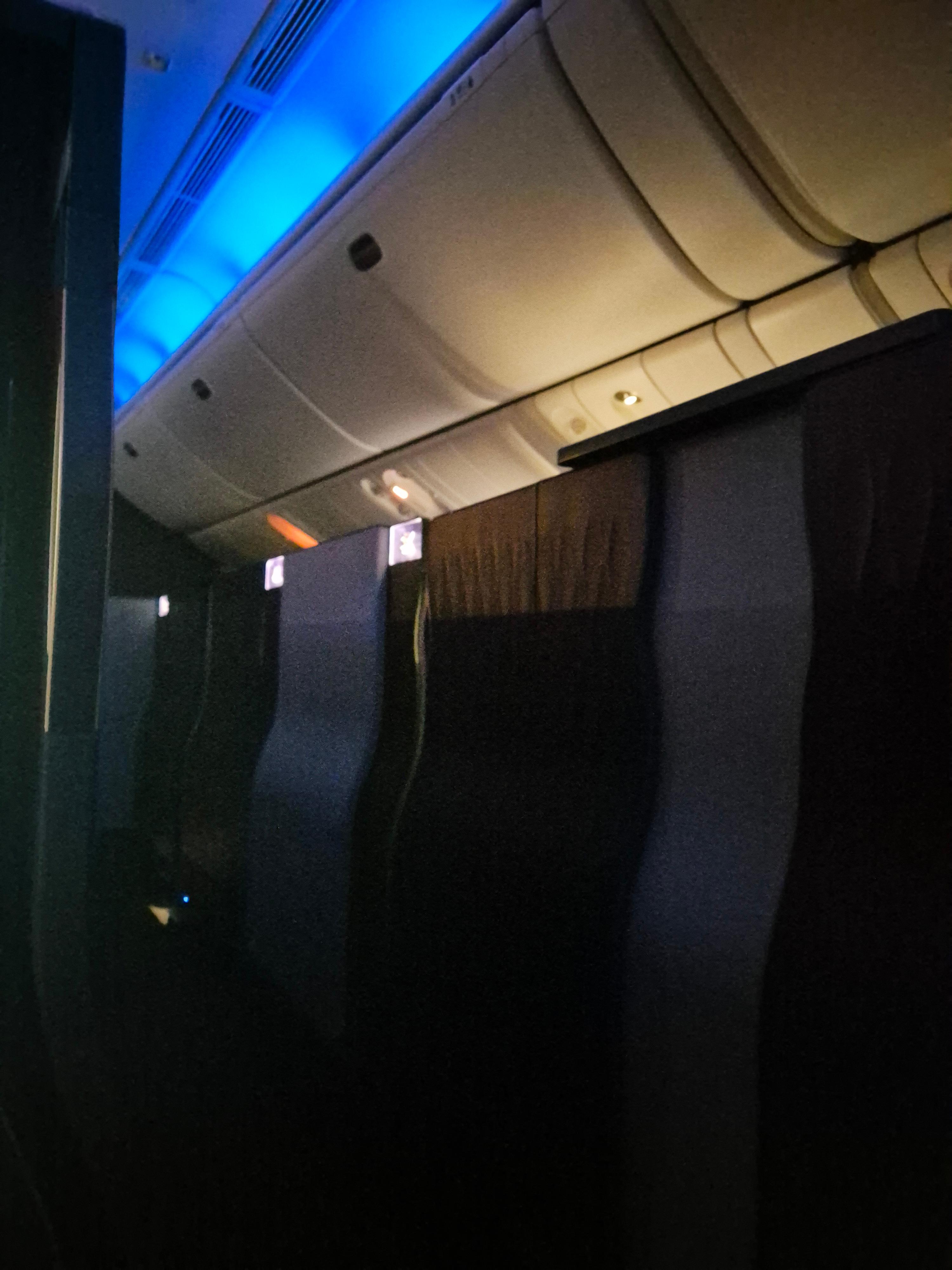 운이 좋으면 아래와 같이 각 좌석을 독립 공간으로 만들 수 있는 기종에 걸리기도 한다. 이 때는 정말 개인 방에 있는 듯한 느낌이어서 좋았다. 그리고 마침 승무원이 한국분이셔서 이것저것 잘 챙겨주시기도 하였다.