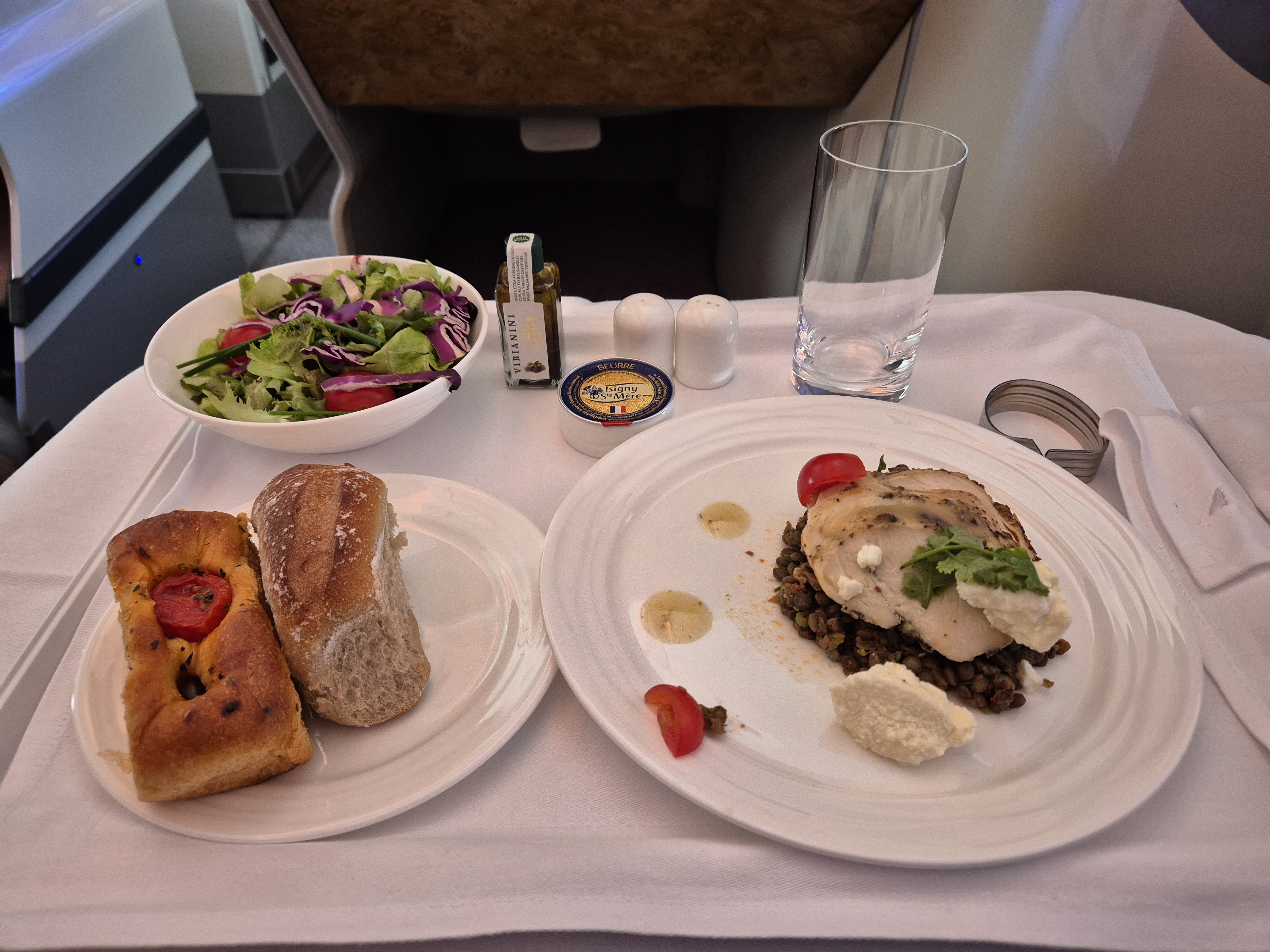아마 밥은 비즈니스 클래스라면 다들 잘 나오지 않을까 싶다. 개인적으로 기내식에는 큰 의의를 두지 않는 편이라 적당히 맛있게 먹었다. 그래도 야채 등이 신선하게 나오는 점이 참 좋았다.
